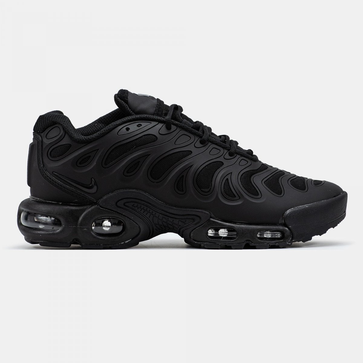 Nike Air Max Plus Drift ‘Triple Black Carbon Fiber’ (код моделі: HF0785-001) — інноваційної моделі, яка поєднує в собі сучасний дизайн та передові технології для максимального комфорту та стилю.