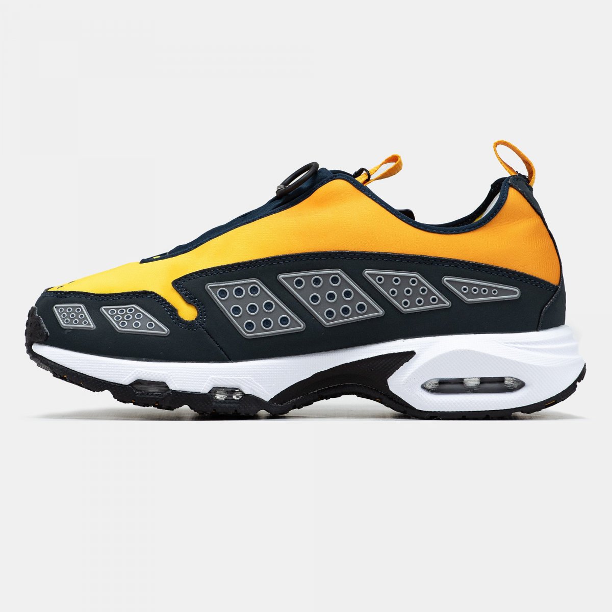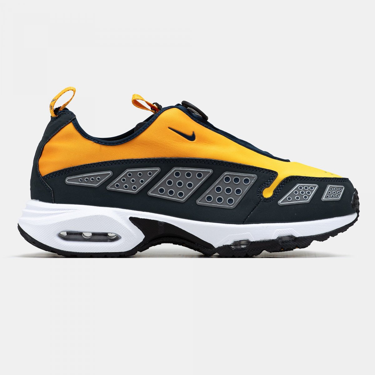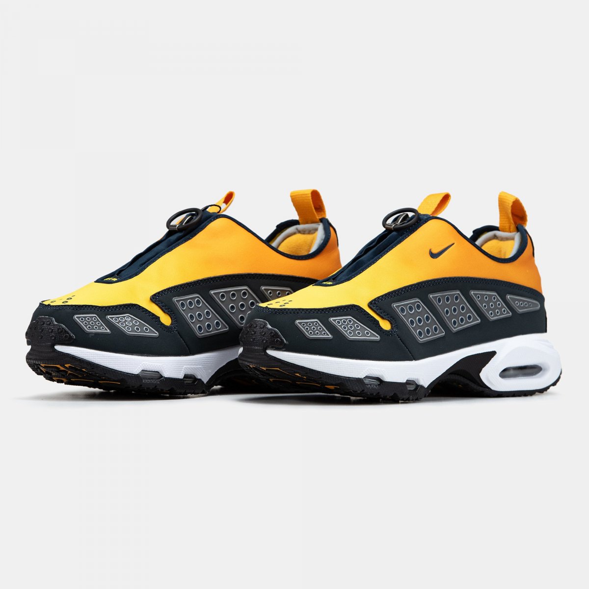 Спочатку випущені в 1999 році, SNDR (вимовляється як Sunder) відзначились неординарним дизайном: еластичний неопреновий верх, блискавка поверх шнурівки та обтічний силует зробили їх взуттям з випередженням часу. У 2024 році модель повертається, зберігаючи свою авангардну форму та отримуючи оновлену амортизацію Air Max — для комфорту в міських ритмах.