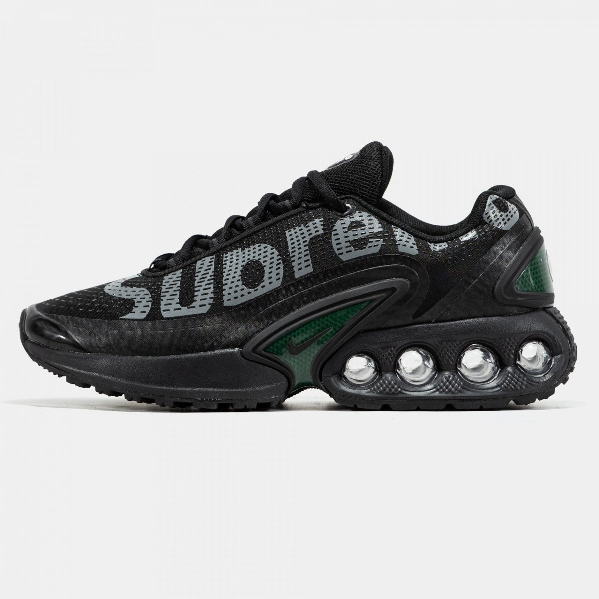 Supreme x Nike Air Max DN “Black Galactic Jade” (код моделі: FZ4044-001) — результат співпраці між брендами Supreme та Nike, що поєднує в собі інноваційний дизайн та сучасні технології.